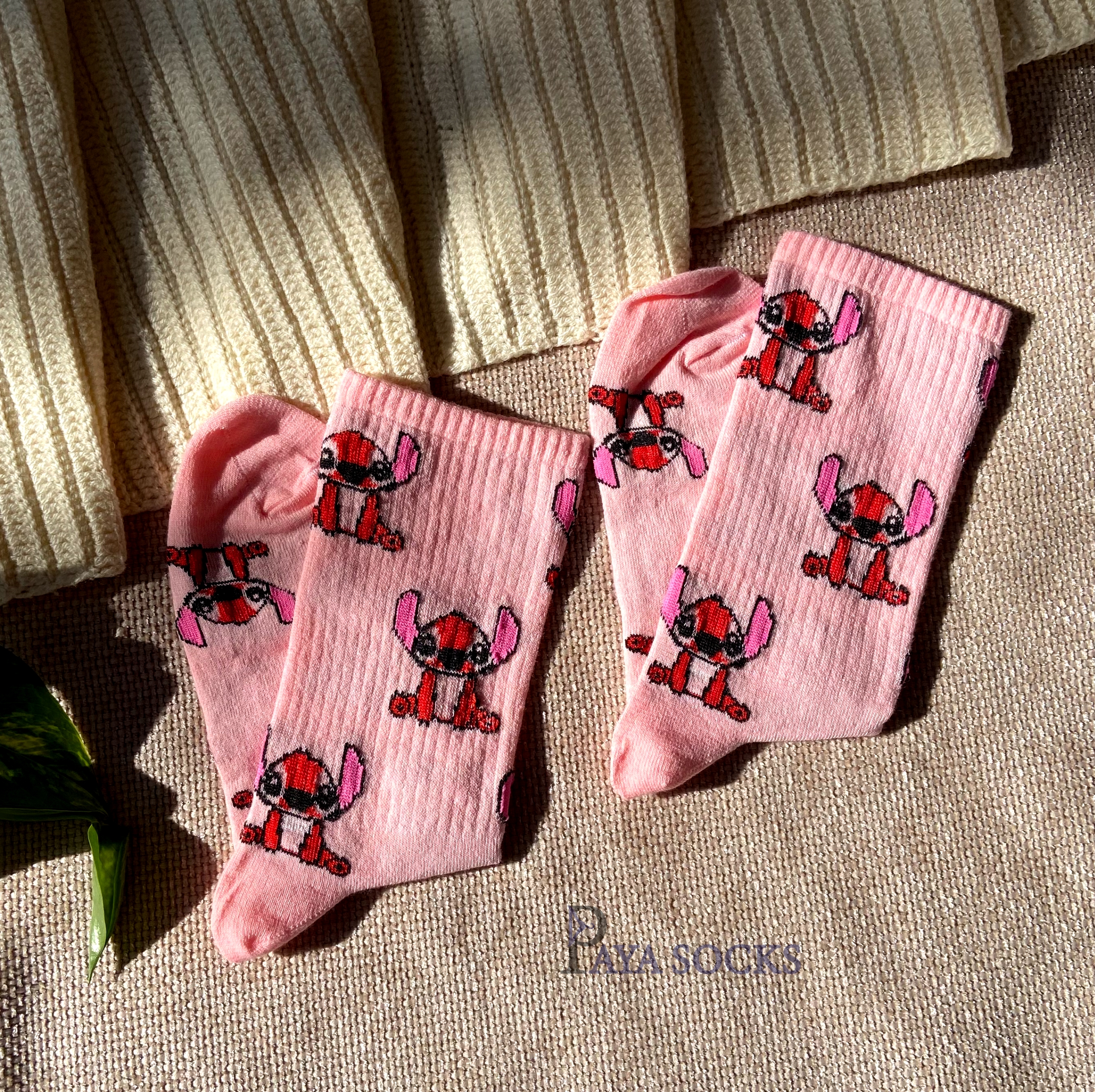جوراب ساقدار دخترانه طرح استیچ با طراحی فانتزی و دوستداشتنی، انتخابی جذاب برای استایلهای روزمره و اسپرت است.