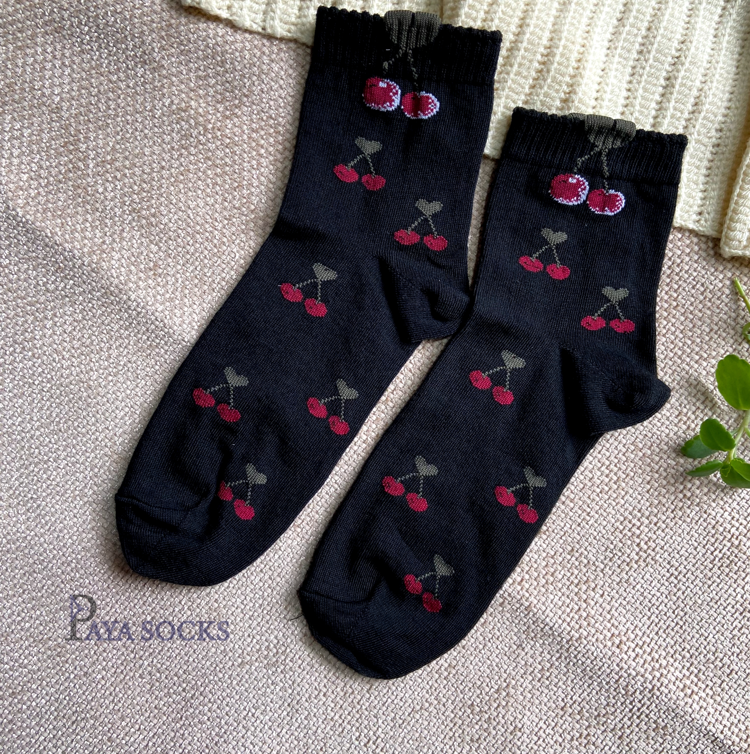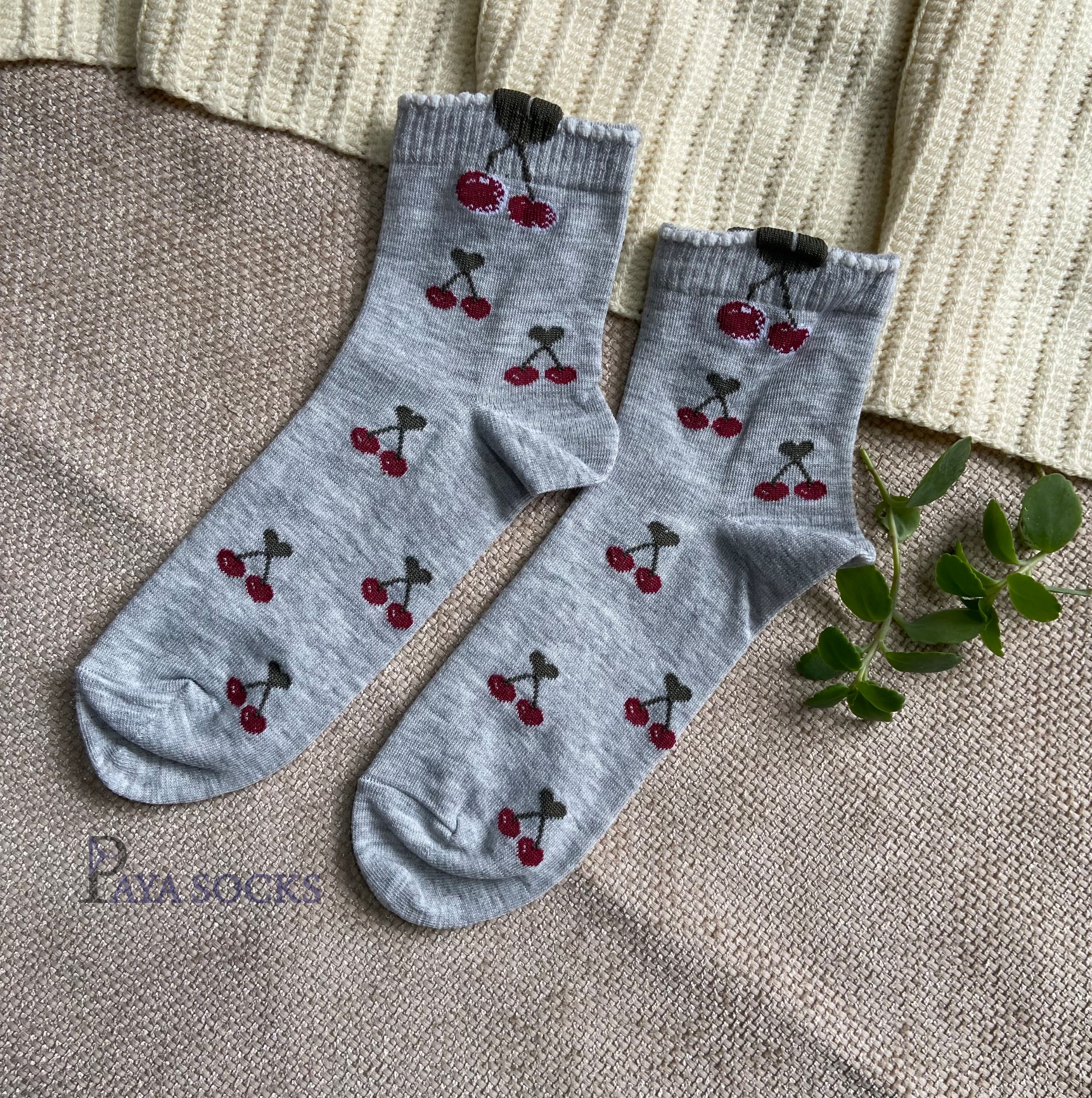این جورابها به دلیل داشتن رنگهای خنثی در زمینه، به راحتی با شلوارهای جین آبی، زغالی و حتی دامنهای کوتاه ست میشوند. رنگ قرمز گیلاسها تضاد رنگی زیبایی ایجاد میکند که میتواند نقطهی عطف استایل شما باشد.