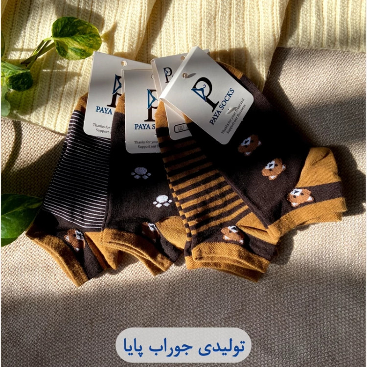 پک 12 عددی جوراب مچی زنانه با طرح دلربای تدی (Teddy) و تم رنگی گرم قهوهای-شکلاتی.