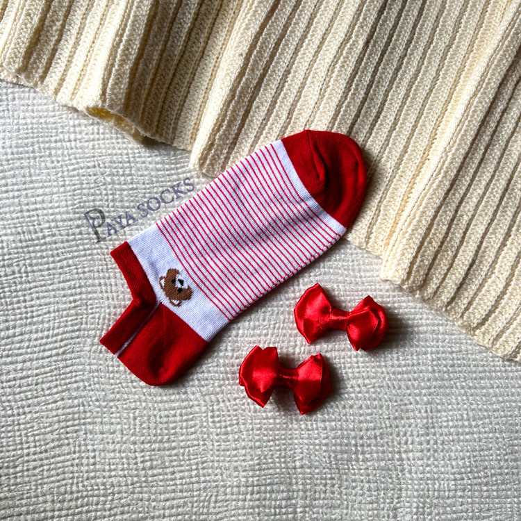 این پک چهارتایی جوراب زنانه با طرح تدی دوستداشتنی و تم قرمز، انتخابی جذاب برای استایلهای فانتزی و لطیف دخترونهست.