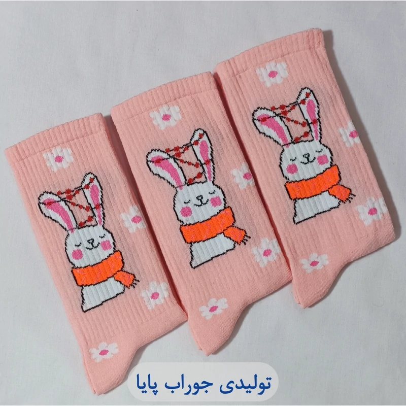 این جورابهای دوستداشتنی با رنگ صورتی پاستلی جذاب و طرح خرگوشهای شاد با شال گردن نارنجی، یک انتخاب عالی برای روزهای پاییزی و سرد زمستان هستند.