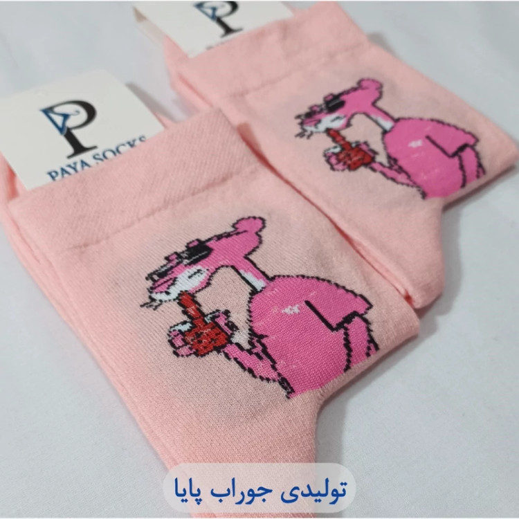 جوراب دخترانه مدل پلنگ صورتی