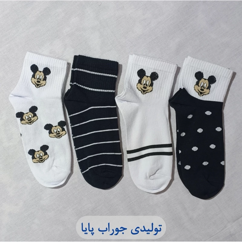 این پک جوراب چهار عددی با الهام از شخصیت محبوب دیزنی، میکیموس، و ترکیب رنگهای ابدی مشکی و سفید، یک انتخاب عالی برای استایلهای روزمره و اسپرت شماست. با پوشیدن این جورابها، یک حس نوستالژیک و شیک را تجربه کنید!